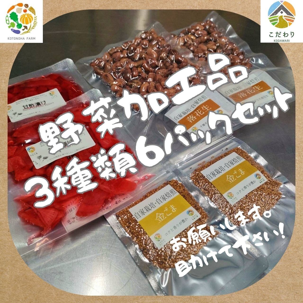 野菜加工品3種類(煎り落花生、煎り金ごま、甘酢漬け)6パックセット:送料込み